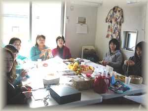 1月18日のアロハヘブンクラスは、2006年初めてのリボンレイ講習会でした。みなさんお変わりなく楽しそうにおしゃべり&リボンレイ作りしていらっしゃいました。 初めて参加してくださったKaeさんも、レフアペパレイに挑戦!半分近くまでお作りになられてビックリ!しました。無事に完成されるのを楽しみにしていますね。 午前・午後共に、とても賑やかで楽しかったです♪ |