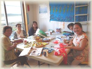 11月1日のアロヘクラスは、久しぶりに中西先生(トールペイントの先生)とカトちゃんも参加してくださってとても賑やかでした。 |