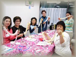 4月21日「アトリエおだきゅう」リボンレイクラスがスタートしました。初日から定期講座が始まり、8名の皆様と楽しくリボンレイ作りをしました。初日の今日は「スクエアノットとブレード」のストラップ2種を作成しました。皆様無事に完成されてとっても喜んでいらっしゃいました。小田急線「和泉多摩川駅」改札横にある、とても便利なカルチャースクールです。残念ながら定期講座は満席となってしまいましたが見学はご自由ですので是非遊びに来てくださいね。来月は皆様で「プルメリアレイ」を作成します。 |