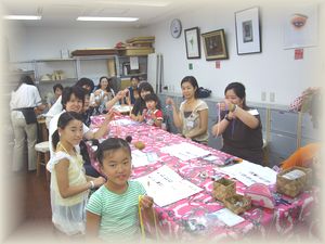 7月30日のアトリエおだきゅうクラスは、「夏休みの親子で楽しむリボンレイ作り」のイベントで大勢のちびっ子とお母さん・お父さんが大集合〜。みんなで「スクエアノットストラップ」を作りました。最初にお色選びをしていただくのですが、なかなか皆さん決まらなくて悩んでいましたが、それも楽しそうでしたね。今日は茅ヶ崎アロハヘブンクラスをご卒業されたKaoriさんがアシスタントとしてクラスに参加してくださいました。初めての先生役で、最初は緊張していたみたいですが、すぐに慣れてとても楽しそうにご指導していましたね。ちびっ子達もかなりの集中力でがんばっていました。無事に全員完成〜。とても満足そうな笑顔笑顔で、私たちもとても嬉しかったです。また次回も皆様にお会いできますように〜♪Mahalo |
