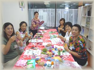 5月19日のアトリエおだきゅう定期講座は皆様で「プルメリアレイ」を作成しました。お色を自由に選んでいただいてとても楽しそうでしたね。2時間で皆様3分の2近くまで完成していました。器用な生徒様揃いなので安心〜しました^0^ あいにくの雨模様で欠席者ももいらっしゃいましたが賑やかにとても楽しく過ごすことができました。来月は皆様で「クロッカスレイ」を作ります。 |