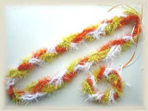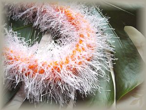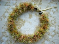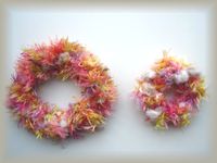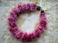 | 薄いピンクとグリーンで作ったヒナヒナ(Hina Hina Crochet Lei)です。おそろいでシュシュ(髪飾り)も作ってみました。これはFizz yarn3本にサテンリボン1本を使用しています。らせん状に色の切り替えがあってとってもかわいく仕上がりました。なかなか手に入らない特殊な毛糸なので、とっても貴重です。今年の秋・冬はマフラー代わりとして使いたいと思ってま〜す♪ | |||||||||||||||||||||||||||||||||||||||||||||||||||||||||||||||||||||||||||||||||||||||||||||
