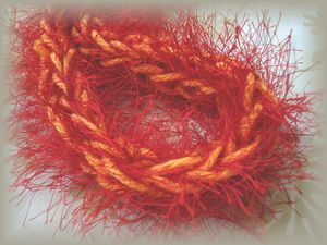 | 2本のFunny yarnと1本のFizz yarnに2本のサテンリボンを絡ませて編んだ Honehone (Honey) です。シックな秋色で生成りっぽいセーターに合いそうですね。 | |||||||||||||||||||||||||||||||||||||||||||||||||||||||||||||||||||||||||||||||||||||||||||||