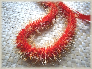 | Crochet Lei(クロッシェレイ)とは,グログランリボンをメインラインとして複数の特殊な毛糸(イタリア製Yarn)を鍵編みで絡ませ、トリミングして作る今ハワイで大人気のレイのことです。軽くて手触りもいいのでフラダンサーやお部屋のインテリアに幅広く楽しまれています。秋・冬はマフラーとしてもいいですね。同じ毛糸を使ってシュシュ(頭の飾り)やブレスレットとしても人気があります。 | |||||||||||||||||||||||||||||||||||||||||||||||||||||||||||||||||||||||||||||||||||||||||||||