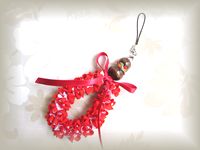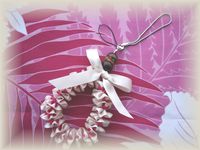 | シャンパンカラーとレッドで作ったプルメリアレイストラップです。大人の女性的な感じで シックでオシャレなストラップに仕上がりました。キーチェーンやバックにぶら下げてもいいですね♪ | |||||||