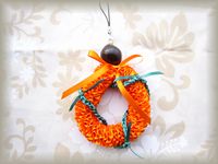 | オレンジとグリーンがとっても鮮やかなイリマ&ティレイストラップです。とっても鮮やかでかわいく仕上がりました。 緑のリボンを本物のティのようにかぎ針で編んでいきます。このストラップにはククイがよく似合いますね。これからの季節にはピッタリのカラーで思いっきりハワイ〜♪ってかんじですよ〜 ^o^ | |||||||