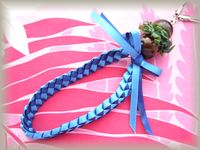 | 豪華に4色のリボンを使って編んだ 4Color's Blade Lei ストラップです。かなりしっかりと編みあがりますので愛犬の首輪やリードにしてもかわいいですよ。配色・配置はお好みでお楽しみいただけます〜♪ | |||||||