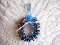 | パステルブルーのピコリボンで編み上げたスクエアノットストラップです。このおりぼんはハワイで去年購入(FloraDec)したものです。 ピコリボンは日本ではなかなか探すことのできない特殊なリボンなのでアメリカより輸入しています。アメリカではフェザーエッジリボンと呼ばれています。かわいくできました〜♪ | |||||||