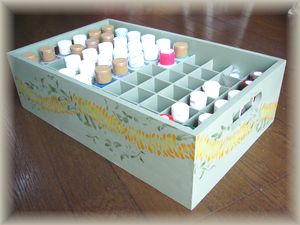 | アクリルペイントが増えたので、専用ボックスにステンシルして見ました。ウエッジウッドグリーンが大好きな色の1つなので、ベースカラーにしました。イリマ&マイレも大好きなお花です〜。 | |||