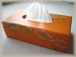 | ご近所友達の「ユッキー」へ本人からリクエストされていたプルメリアのティッシュボックスです。ラブリーなかんじで・・・と言われていたのでおもいっきりかわいく仕上げました。とても喜んでくれましたよ〜♪ | 町田クラスで大活躍してくれているピカケ&マイレのオレンジティッシュボックスです。ベースカラーを思い切ってオレンジにしてみました。オレンジに茶を混ぜて作ったペイントカラーが、シックで素敵に仕上がってくれて大満足の仕上がりになりました。 | ||
