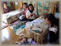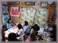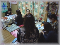11月1日の町田クラスは、午前・午後共にたくさんの生徒さんで賑わいました。 午前クラスはAyakoちゃんも遊びに来てくれて、キルト講師のKishida先生とハワイアンキルトクラスになりました。 リボンレイ好きはハワイアンキルトも大好きなのですよね〜。 私も岸田先生のかわいいバックのキットを完成させて早速持ち歩いています〜。 午後はチーム町田がハワイアンキルトに夢中〜!の写真です。 |