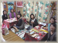 3月15日の町田クラスは、午前クラスに風邪で3名様が欠席!とても流行っているのですね〜^^; そうゆう私も風邪を引いてしまい咳が止まりません^^; 午後クラスはなぜか大人数に!15名のギュウギュウ詰めとなりました。 チーム日吉のMiki先生も手作りケーキを持って遊びに来てくださいました。後もう少しで出来上がるキルトは眠っています^^; チーム町田のメンバーも5名集合!今日もハルミンはハプニング話をみんなにご披露してお教室は興奮状態でした^^; 4月の日本での披露宴も楽しみですね〜☆ |