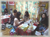 2月8日の町田クラスは、韓国からの生徒さんZinoが3回目の来日で無事にイントラコースご卒業〜でした。今日はZinoのお母様も一緒に遊びに来てくださって、とても楽しそうにリボンレイ作りを楽しんでいらっしゃいました。ラッピングコーディネーターのZinoさんは、韓国でこれからリボンレイを皆様に広めてくださいます*^0^*楽しみですね〜♪ 午後クラスはお馴染みタッキー&Kumiさんペアーも遊びに来てくださいました。今年初めてのリボンレイクラスでとってもj興奮していましたね^^; サークルウィーブがあんな編み方でこんな形になるなんて〜とお二人とも感動!していらっしゃいましたね☆ |