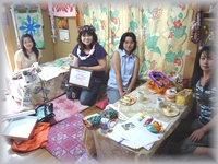 5月24日の町田クラスは、久しぶりにJunkoさんが遊びに来てくださいました。Qちゃんと私も通っているトールペイントにはまっているそうで〜す。 かわって午後クラスはご存知!タッキー&くみさんが参加してくださいました。いつもどおり、笑いの止まらないとっても楽しいリボンレイクラスとなり、私もお腹が痛くなるくらい笑いました〜*^0^* |