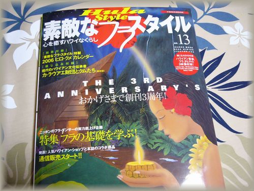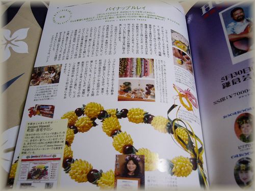 2005年12月24日発売のイカロス出版「素敵なフラスタイル」で、イポラニハワイオリジナルパイナップルレイを初め、町田クラスのお教室風景が紹介されました。取材当日は、Tsugikoさんのイントラ卒業式と、Izumiちゃんのバースディパーティーとイベントが重なり、ものすごく盛り上がりました。