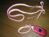 ブレードのロングレイとストラップを作っていただきましたKeikoさんです。とってもかわいくステキに仕上がりましたね。ストラップの飾りリボンの長さをもう少し長くしてあげるともっとかわいかったかも?!次回からは計算して飾りリボンの分量をとっておきましょう〜♪ |