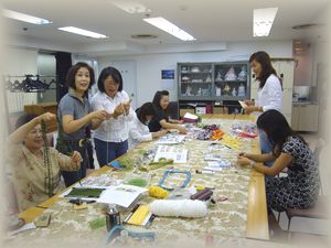 9月15日の「横浜産経学園」は、新しく2名様のご入会が あり、一気に賑やかな雰囲気になりました。 既にインストラクターコースをご卒業の「Mizutani」さんは、 講師役もしてくださってとても助かりました^^; 新しくご入会の2名様は、ストラップを無事に完成〜。 来月からは本格的なロングレイに挑戦されます。 いよいよ来月は「Kumiちゃん」がご卒業〜(予定?!)デス。