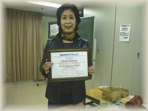 11月17日の横浜産経学園クラスは、なんと!私の事情で 「MizutaniさんとKumiちゃん」の卒業式が半年先となって しまいました。 本日無事にお祝いができてとても喜んでいただけました。 他の生徒さん達も心からお祝いしてくださっていましたね。 Mizutaniさんは来月ハワイへ旅行デス(うらやましい〜) たーっぷり楽しんできてくださいね☆